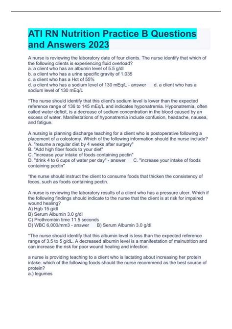 Read Online ATI NUTRITION PRACTICE QUESTIONS Doc